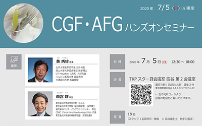 昨今、血液から作製される血液生成物を利用する再生療法が注目を集めています。CGF(Concentrated Growth Factors)・AFG(Autologous Fibrinogen Glue)とは、患者様から採血した血液に添加物(抗疑固剤など)を一切加えずにできる完全自己血由来のフィブリンゲルです。本研修ではCGF・AFGの基礎から、血液採取・CGF・AFG作製・CGFメンブレン作製等を実習形式で習得して頂きます。
